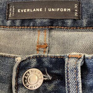 Description: Everlane/Uniform The Slim 4-Way Stretch Organic Jean 29x30 Vintage Tint. Four-way stretch organic denim stretches in the warp and the weft for maximum confidence in motion. The cotton is organically farmed and milled in Turkey, using Indigo Flow dyeing methods to reduce water consumption by 55%. Slim fit. Slim through the hip and thigh, with a slightly tapered leg. Regular rise. Machine Wash Cold With Like Colors, Wash Inside Out, Only Non-Chlorine Bleach When Necessary, Tumble Dry Low, Cool Iron If Needed.