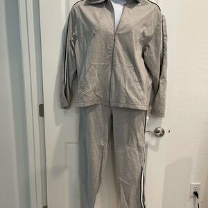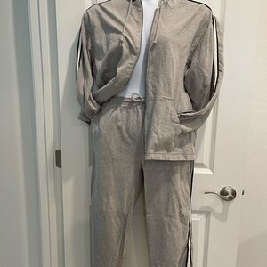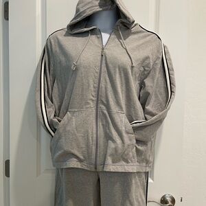Matching 2-pocket hooded jacket and 2-pocket drawstring bottoms are soft and comfy. This set is perfect for casual outings or running errands. 90% Cotton 10% Spandex