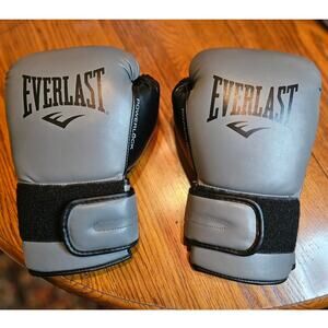 Everlast Powerlock Boxing Training Set Gloves 16 oz. Gray Black Hook & Loop