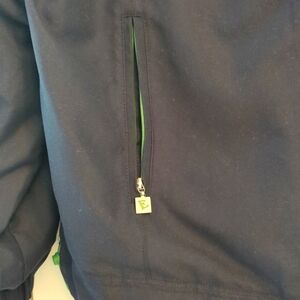 -Navy blue with green trim and white stripe down the sleeve