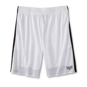 NEW WITH TAGS - LARGE Description Jersey mesh lets air circulateAbove-knee length provides coverage Take on any game in these men's side stripe athletic shorts from Everlast. Offering an above-knee length for extra coverage, these shorts have the fit and feel you need to keep moving. Jersey mesh fabric allows air to circulate to keep you cool and dry. An interior drawstring adjusts the waist for comfort. Drawstring elastic waist Side pockets Knit construction Fabric: 100% polyester Care: Machi