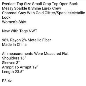 Everlast Top Size Small Crop Top Open Back Messy Sparkle & Shine Lurex Crew Char
