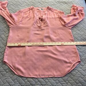 Classy Dusty Peach blouse with a deep V-neck. Perfect for any occasion.
