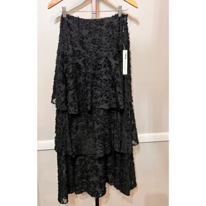 Everleigh High Waisted Tiered Layered Maxi Skirt Black Womens Size 6 NWT