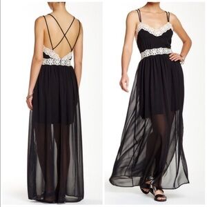 Everleigh Strappy Black White Lace Maxi Dress XS