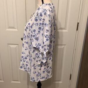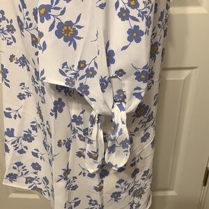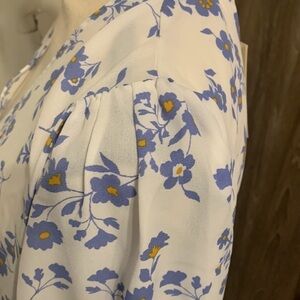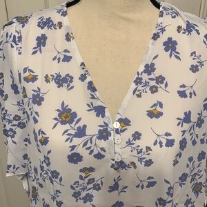NWT Tie sleeve with v neck. 3 button placard. Hi-Lo hem. Dainty Floral pattern. Size small. 24” L in front and 26” L in back. 28” PTP