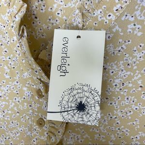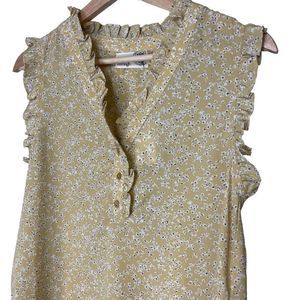 Everleigh Top Size XS Blouse Floral Yellow White Sleeveless Button Shirt V-neck