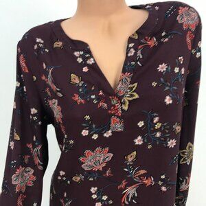 Everleigh Women's Medium Floral Printed Long Sleeve V-Neck Top Blouse Tee Boho