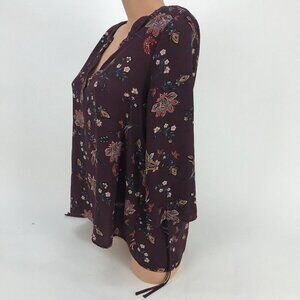 Everleigh Women's Medium Floral Printed Long Sleeve V-Neck Top Blouse Tee