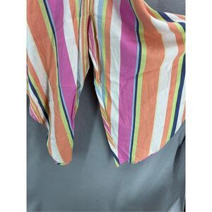 Everlilly Womens Multicolor Linen Blend Striped Asymmetrical Hem Romper Large