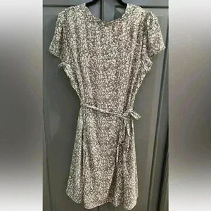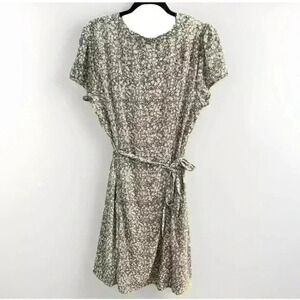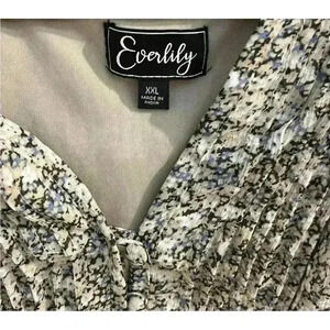 Everlily Blue Floral Printed Dress Waist Tie Short Sleeve V Neck Buttons Sz XXL