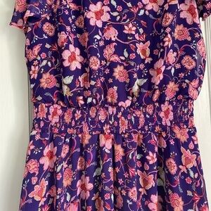 Everlily Floral Fit & Flare Short Sleeves Smocked Waist Dress, Size: Medium
