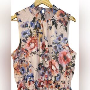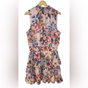 Everlily High Neck Sleeveless Blush Floral Chiffon Tiered Ruffle Dress Size XXL