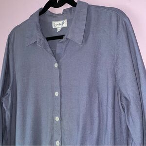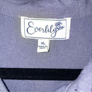 Everlily Size XL Linen Blend Shirt Dress Blue Button Tiered Collar