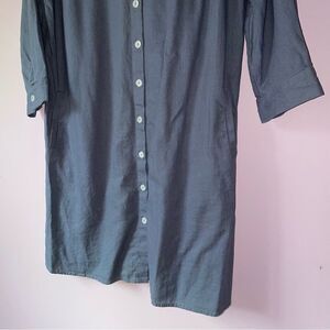 Stylish button-up dress. Features a classic collar and three-quarter sleeves. Perfect for casual or formal occasions. Everlily Size XL Linen Blend Shirt Dress Blue Button Tiered Collar Features - full button front - has pockets - tiered back Flat measurements Pit to pit: 22 inches Length: 37 inches Excellent preowned condition Comment questions, I'm happy to help. All items are steam cleaned Check out my closet! Bundle & save causal breezy beach lightweight coastal grandma quiet luxury contemporary minimalist preppy