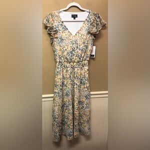 Everlily White Yellow Floral Short Sleeve Dress Size M NWT
