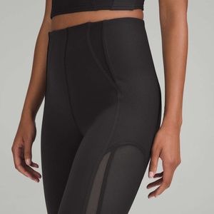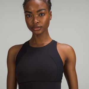 Elevate your workout wardrobe with this stunning Lululemon set featuring a high-neck bra and high-rise training tight leggings in classic black. Designed for women who love activewear, this set is made with Everlux and mesh fabric types to provide comfort and breathability during your workout sessions.