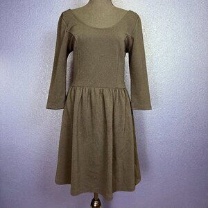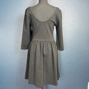 Everly Ballerina Neckline 3/4 Sleeve Skater Dress, Black, Size Large