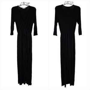 Everly Black Maternity Nursing Maxi Dress | Faux Wrap Jersey Knit Medium Comfy