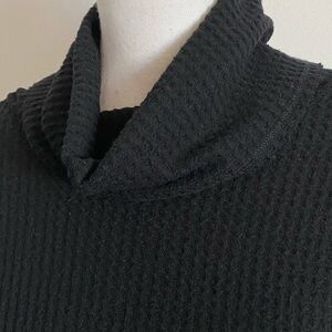 Everly • Black Waffle Fabric Cowl Turtleneck Top
