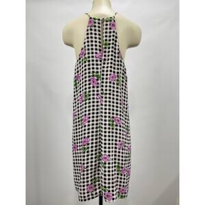 Everly Black White Check Purple Flowers Spring Easter Sleeveless Swing Dress