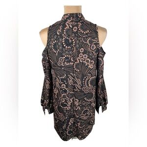 Everly Black and Orange Floral Cold Shoulder Dress Small