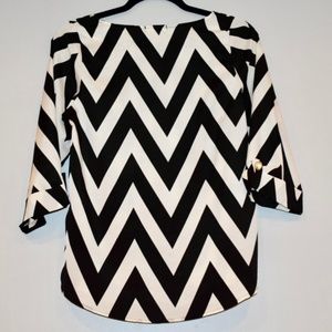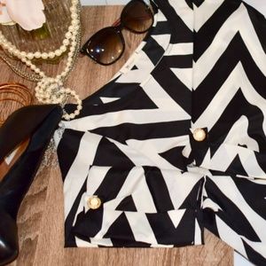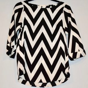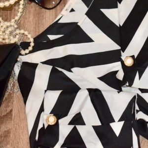 Everly Black/White Pattern Blouse Size S Pearl Button at the end of each sleeve Like new condition