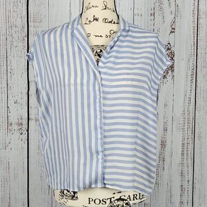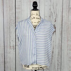 Everly Blue & White Striped Small Oversized Button Down Loose Fit Shirt Blouse