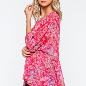 Everly Boho Paisley Print Hi-Low Chiffon Tunic
