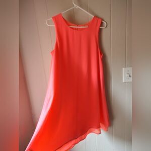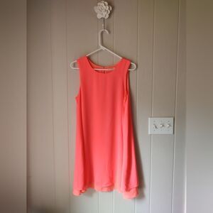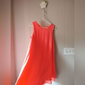 Everly Chiffon Orange Coral Sleeveless Sheer Lined Swing Trapeze Dress Medium