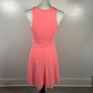 Everly Coral Pink Crew Neck Pleated Waist Tight Knit Sleeveless Knee-length Tank Dress S