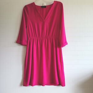 Everly Dress Womens Small Pink 3/4 Sleeve V Neck Elastic Waist Partly Lined USA