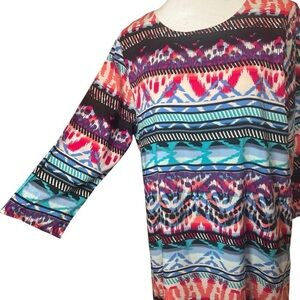 Everly Going Through the Motions Sheath Dress Colorful Boho 3/4 Sleeve Large NEW