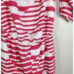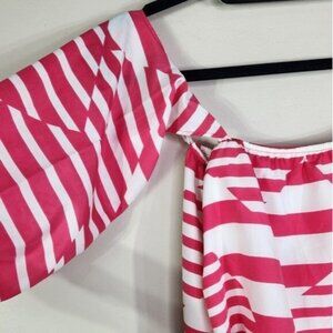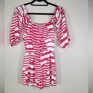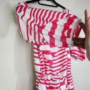 Everly Half Sleeve Asymmetrical Stripes Barbie Romper Women Size S Girly Pink