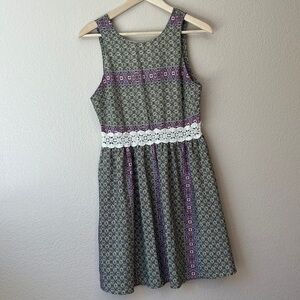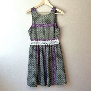 Everly Julia Lace Waist Skater Dress Floral Lace Green and Purple size Medium