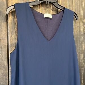 Everly mini dress. Size medium. Sleeveless. A-line. Relaxed fit. Navy blue. Lined. Minimalist solid design. Dress up or down. All seasons outfit. Winter / Spring / Summer / Fall. Preloved. Please see all photos for condition. 100% Polyester.
