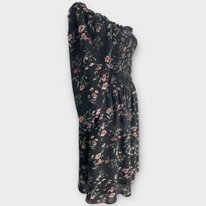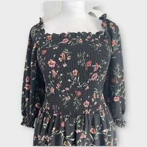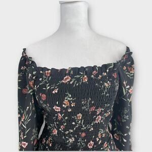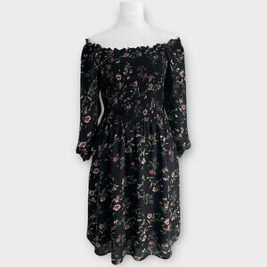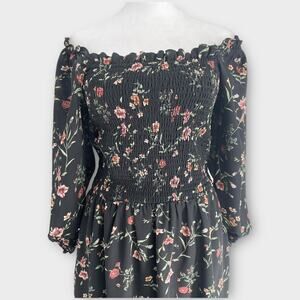 Everly Off Shoulder Dark Floral Balloon Sleeve Smocked Bodice Mini Dress Size L