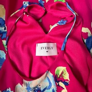 Everly Pink Floral Sundress Mini Women Sz Small Halter Neck Sleeveless