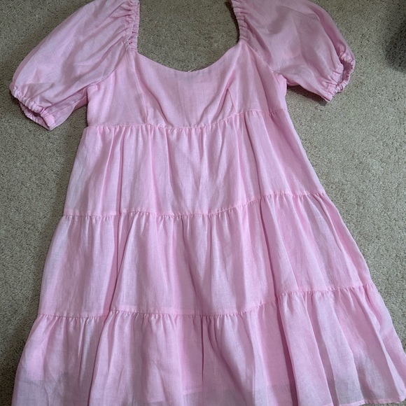 Everly Pink Tiered Sundress with Puff Sleeves