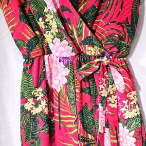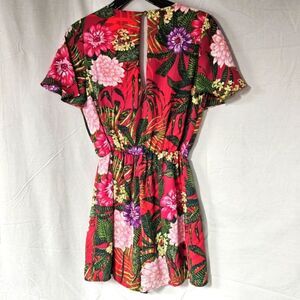 Everly Pink Tropical Floral Print Deep Crossover V-Neck Elastic Waist Romper