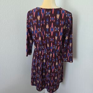 Everly Purple Multicolor Abstract Aztec Quarter Sleeve Midi Dress Size M