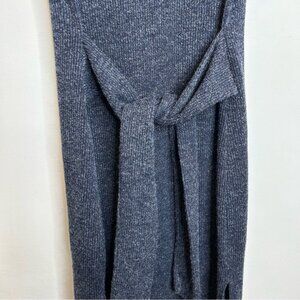 Everly Ribbed Knit Turtlneck Midi Sweater Dress with Tie Blue