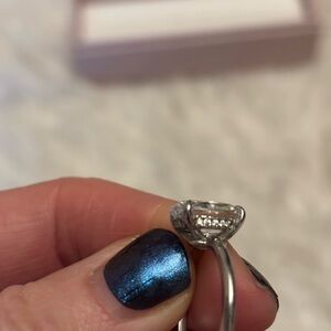 - Features a 4.7 carat Everly Crushed Ice Signature oval cut simulated diamond center (1.5 ratio)