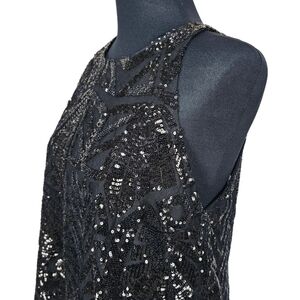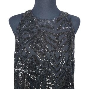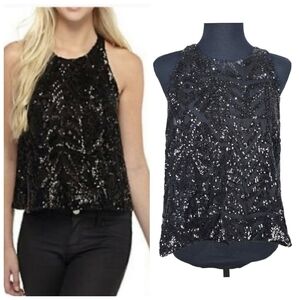 Everly Sequined Top Sz Large Black Jazz Sparkle New Years Cocktails Halter Glam