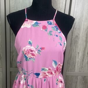 Everly Sleeveless Halter Floral Maxi floor length Pink Dress Women's S