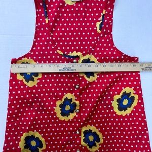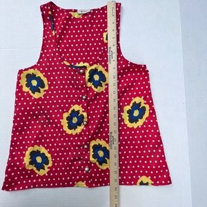 Everly Sleeveless Top with Button Detail Red & White Dot with Flower Small