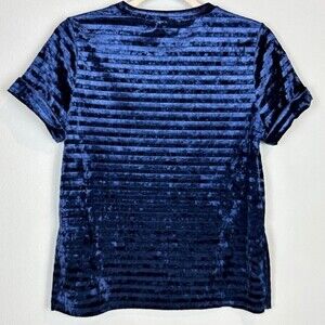 Everly Velvet Blue Velour Short Sleeve Striped Shirt S