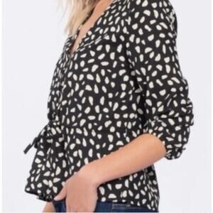 Everly Women's Black and White Wild Thang Blouse Tie Waist Size M EUC