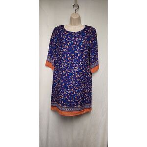 Everly Womens Blue/Orange Diamond Pattern Shift Dress Size Medium.