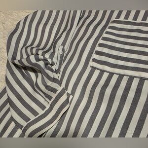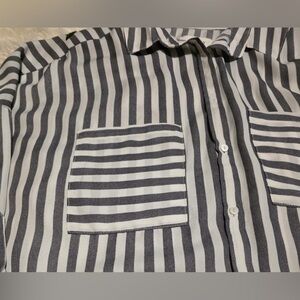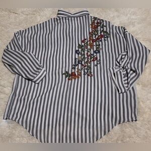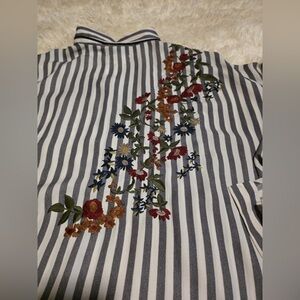 Everly Women’s Size L Black & White Striped Shirt With Embroidered Flowers EUC